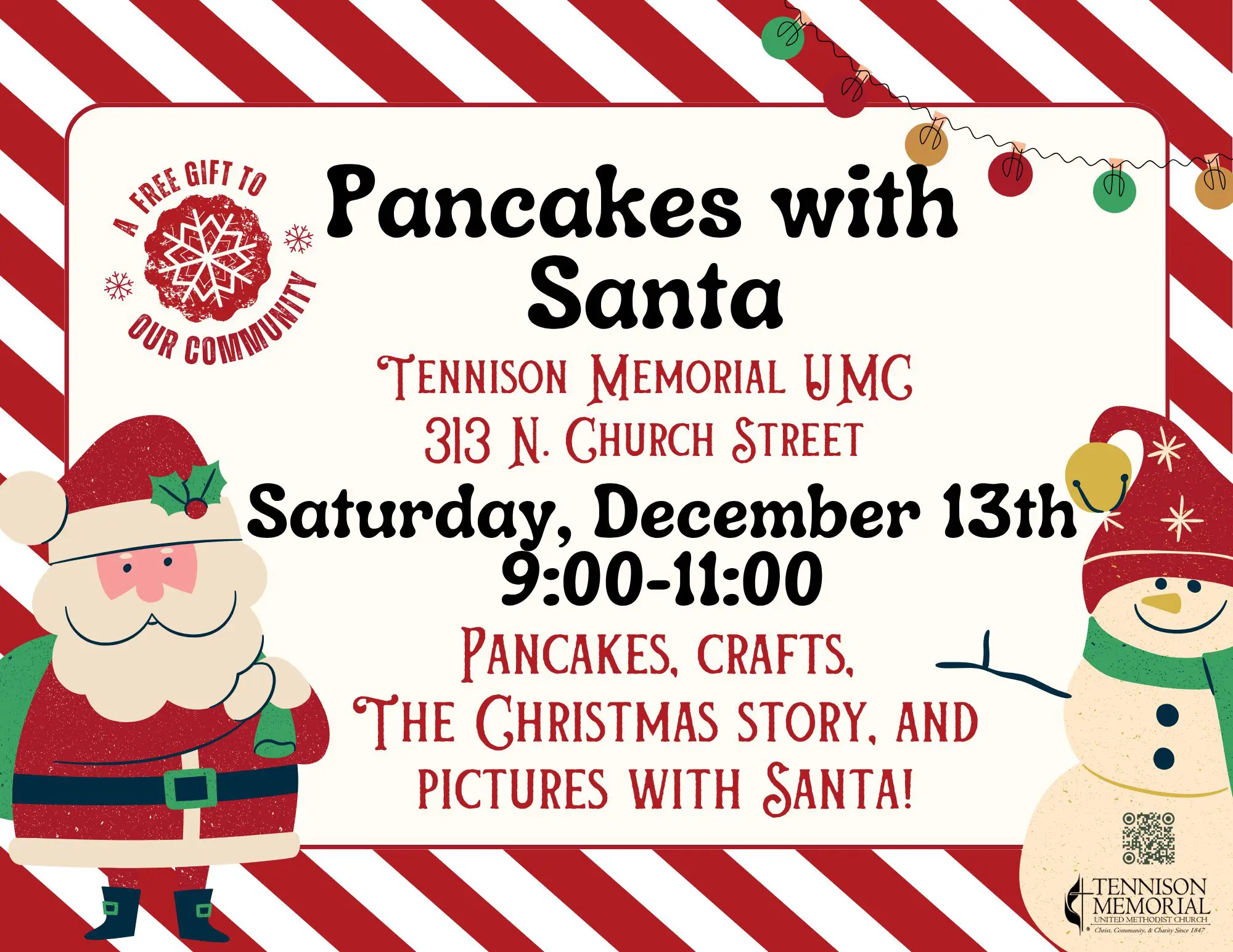 Free gift to the Mt Pleasant community: enjoy hearing the Christmas story, eating pancakes, making a craft, and taking a picture with Santa!