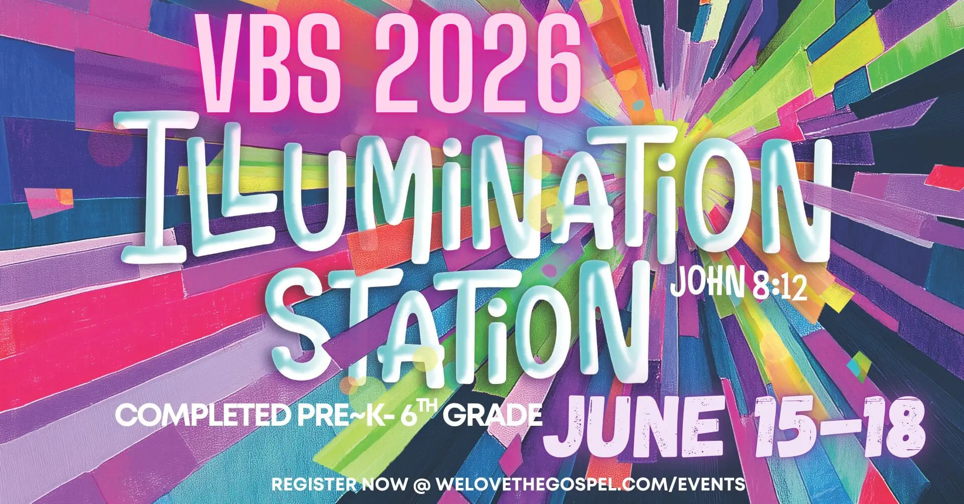 Calling all children pre-K through 6th grade (completed in spring 2026). Join us for Illumination Station- VBS 2026 – at Southern Oaks Baptist Church! It is sure to be the brightest week of the year! During VBS kids will explore all the ways light brightens, illuminates, reflects, and reveals, and along the way discover who Jesus really is!