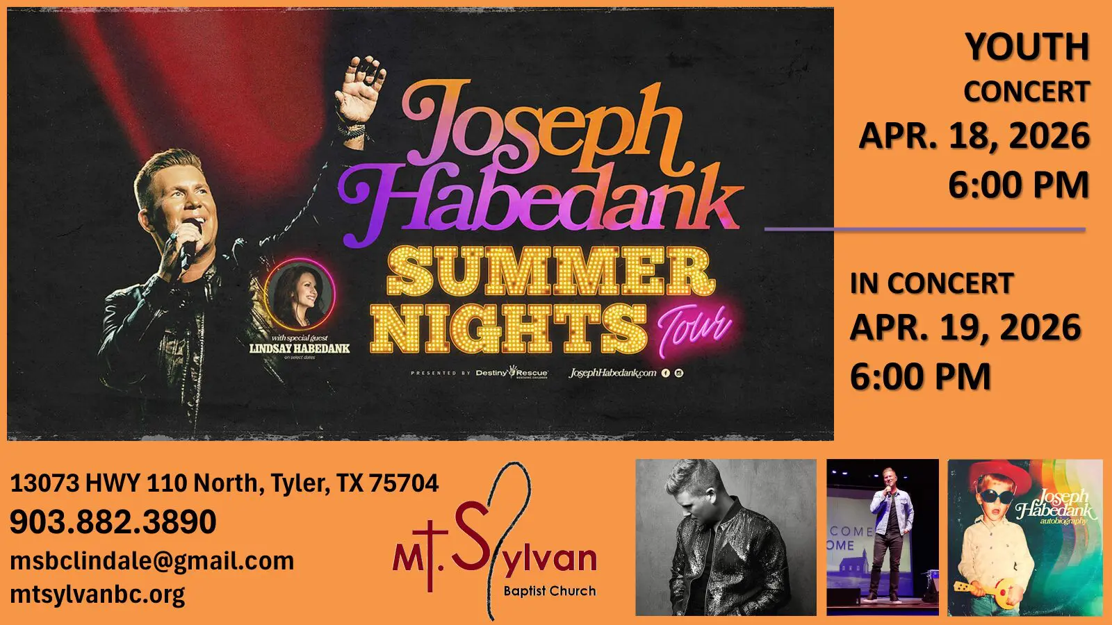 Mt. Sylvan Baptist Church - Tyler 13073 Hwy 110N, Tyler, TX, United StatesChristian artist Joseph Habedank is no stranger to writing songs about real life. However, for the first time, Joseph is diving deep into his storytelling tendencies for an album that is, quite possibly, his most personal undertaking yet. Aptly titled autobiography, Habedank’s fifth studio effort effectively sets his own story to music. Habedank has been […]